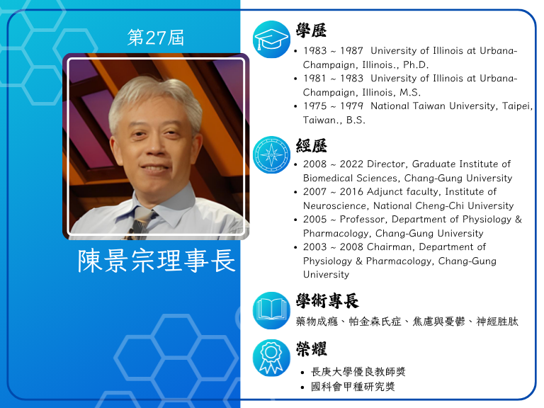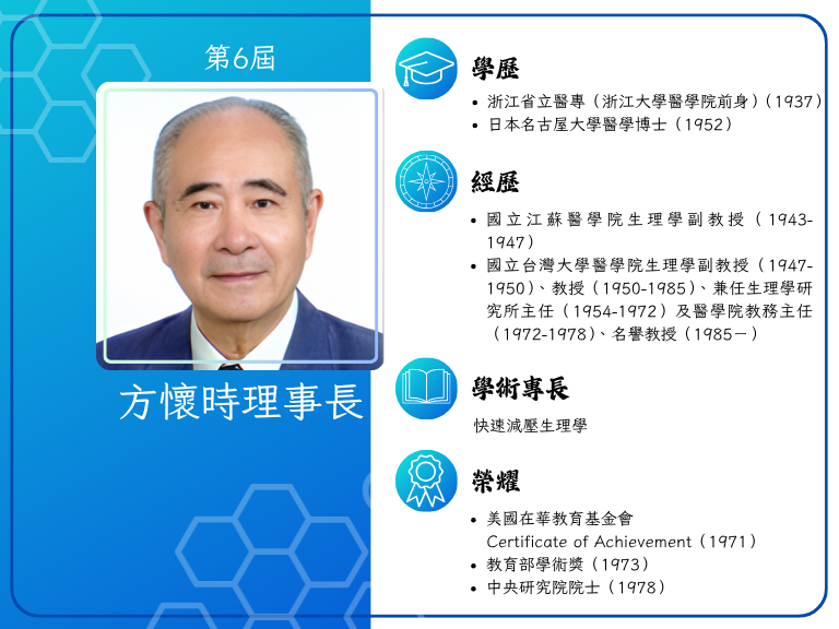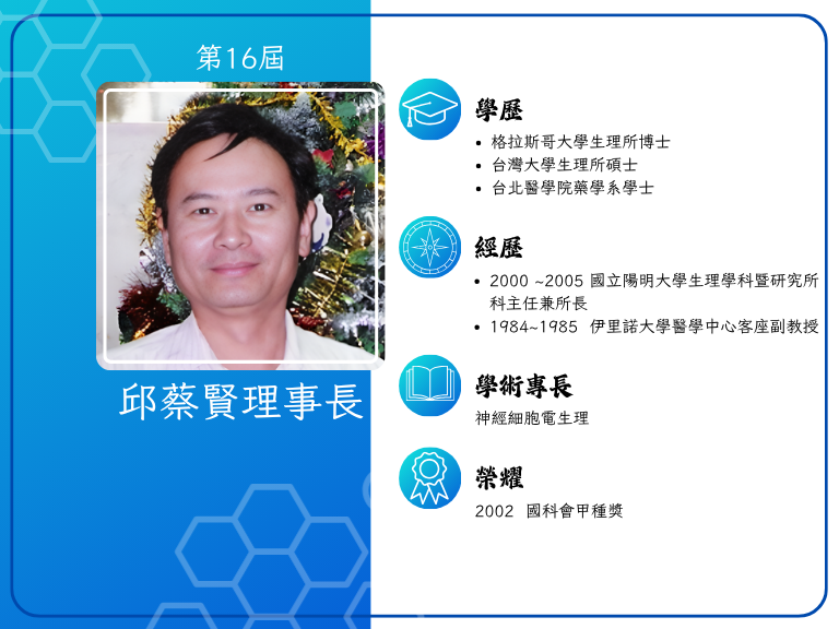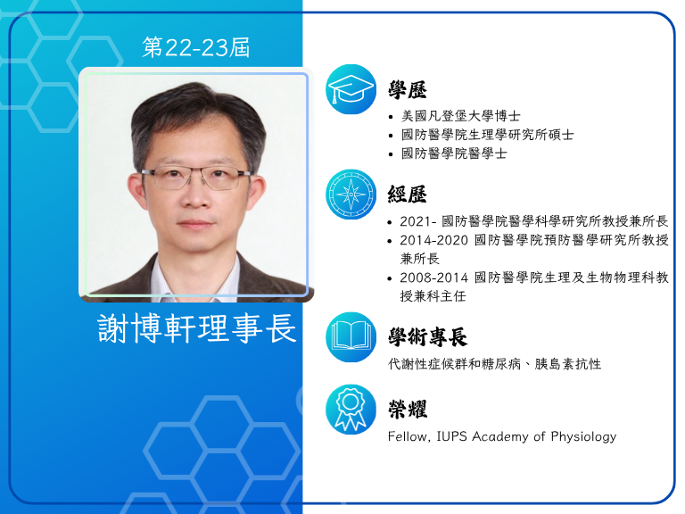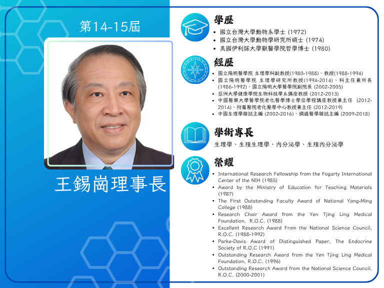 經歷在台復會後,台灣生理界已累積六十多年之教學與研究之學術成果。透過歷屆理事長與理監事之努力不懈,幫助中國生理學會持續轉型與成長,讓世界看到二十一世紀的台灣生理學教育及學術研究之璀璨未來。