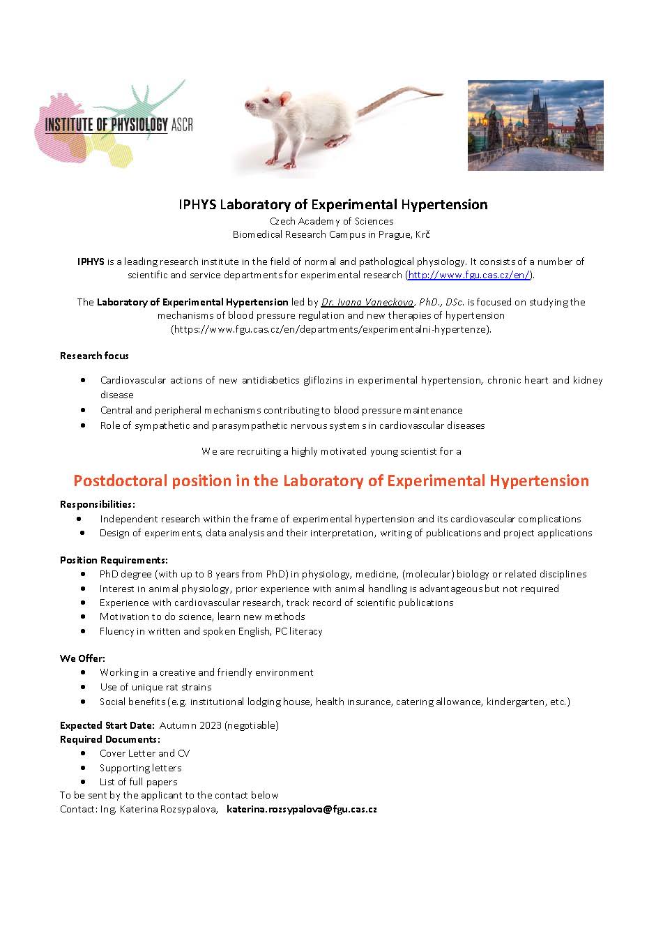 Postdoctoral fellow position in Dr. Ivana Vaněčkov's Lab.
